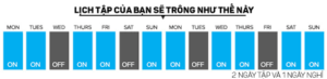 Lịch tập của bạn sẽ giống như hình ảnh dưới đây